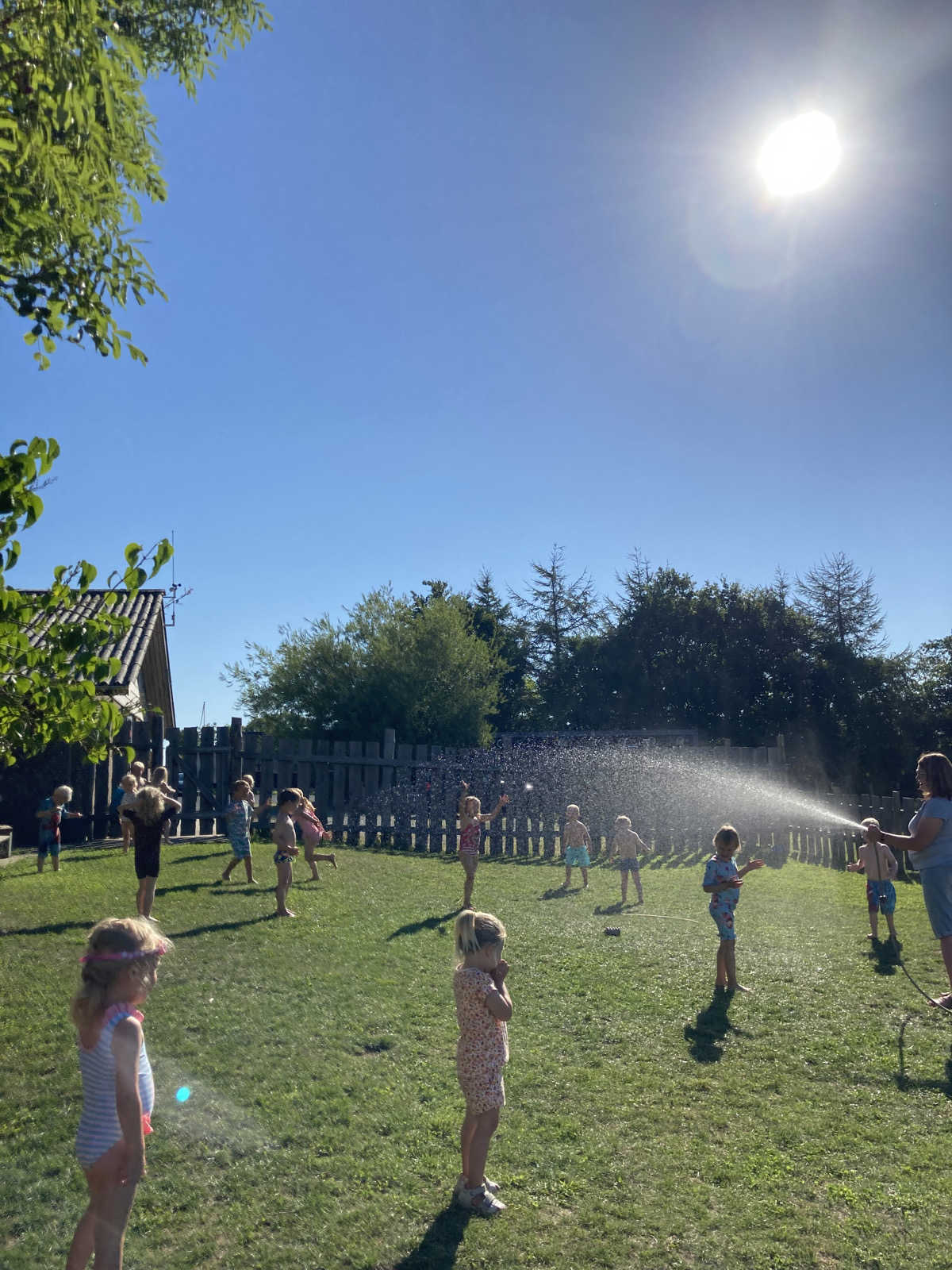 Vi har skygge under træer eller overdækning, når vi leger udendørs mellem kl. 12 & 15.