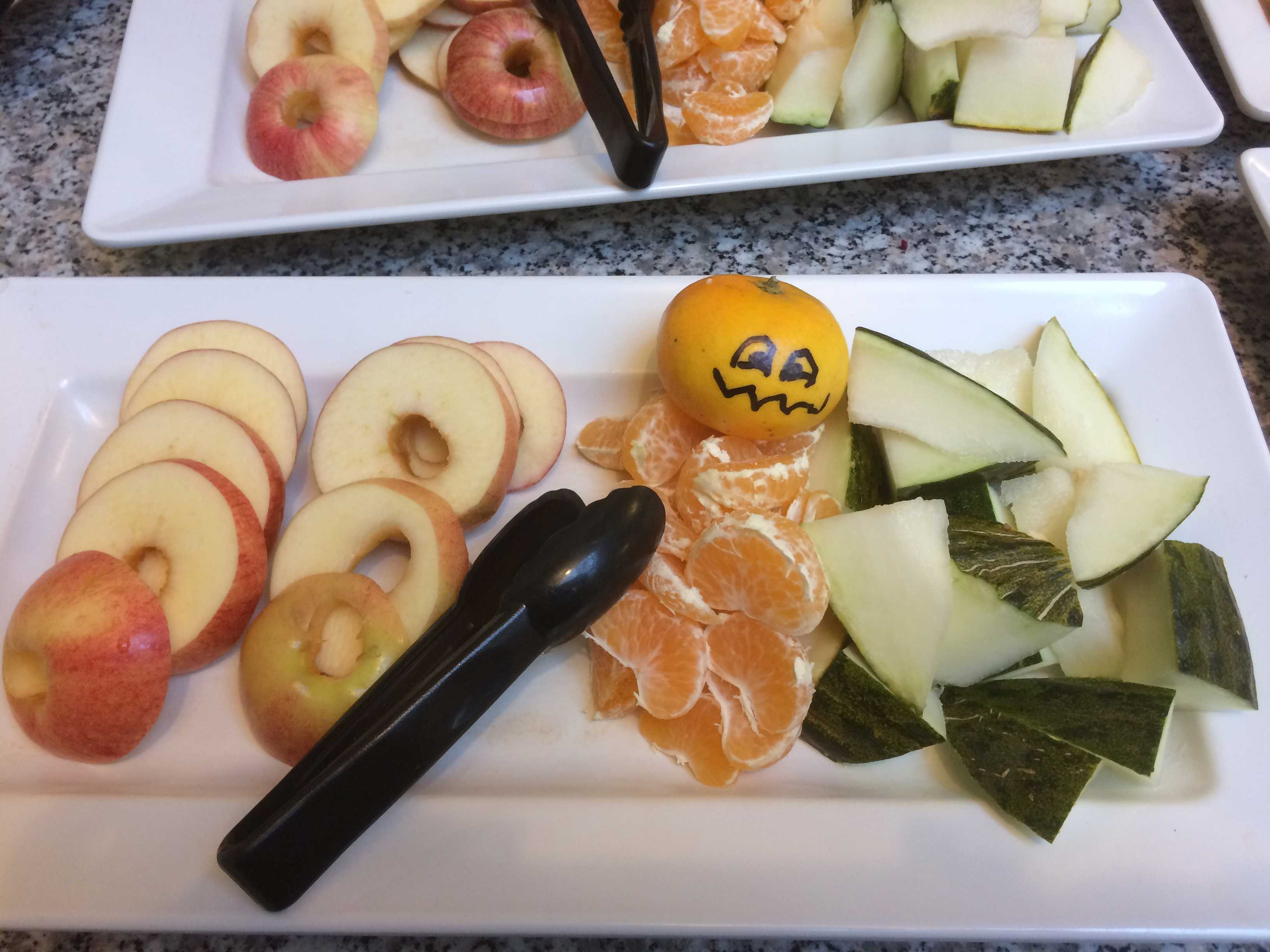 Kl. 8.30 vug/8.45 bhv serveres der formiddagsmad. Måltidet består ofte af frugt og brød. Måltidet foregår på grupperne, hvor der samtidig er samling og snak om dagens aktiviteter.