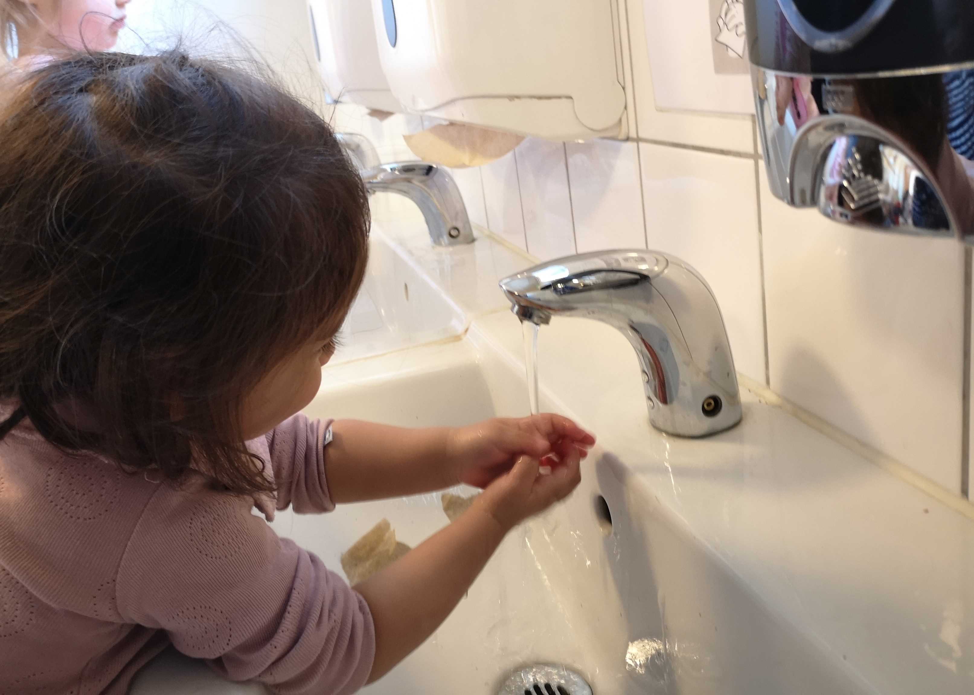 Børnene vasker hænder: - Når de har været på toilettet.