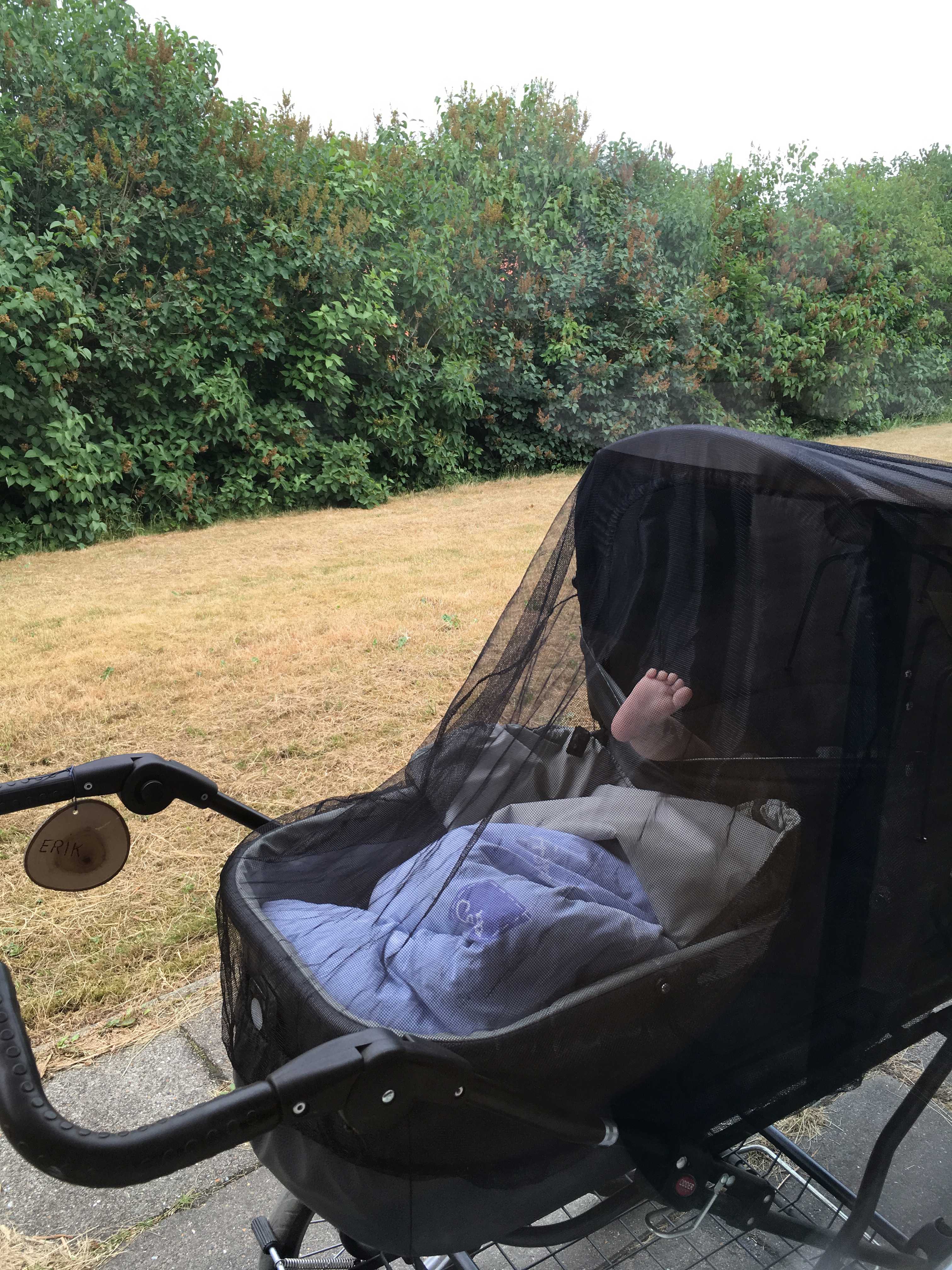 På dage når UV indekset er over 3, smører vi barnet ind med solcreme ved middagstid, der hvor tøjet ikke dækker.