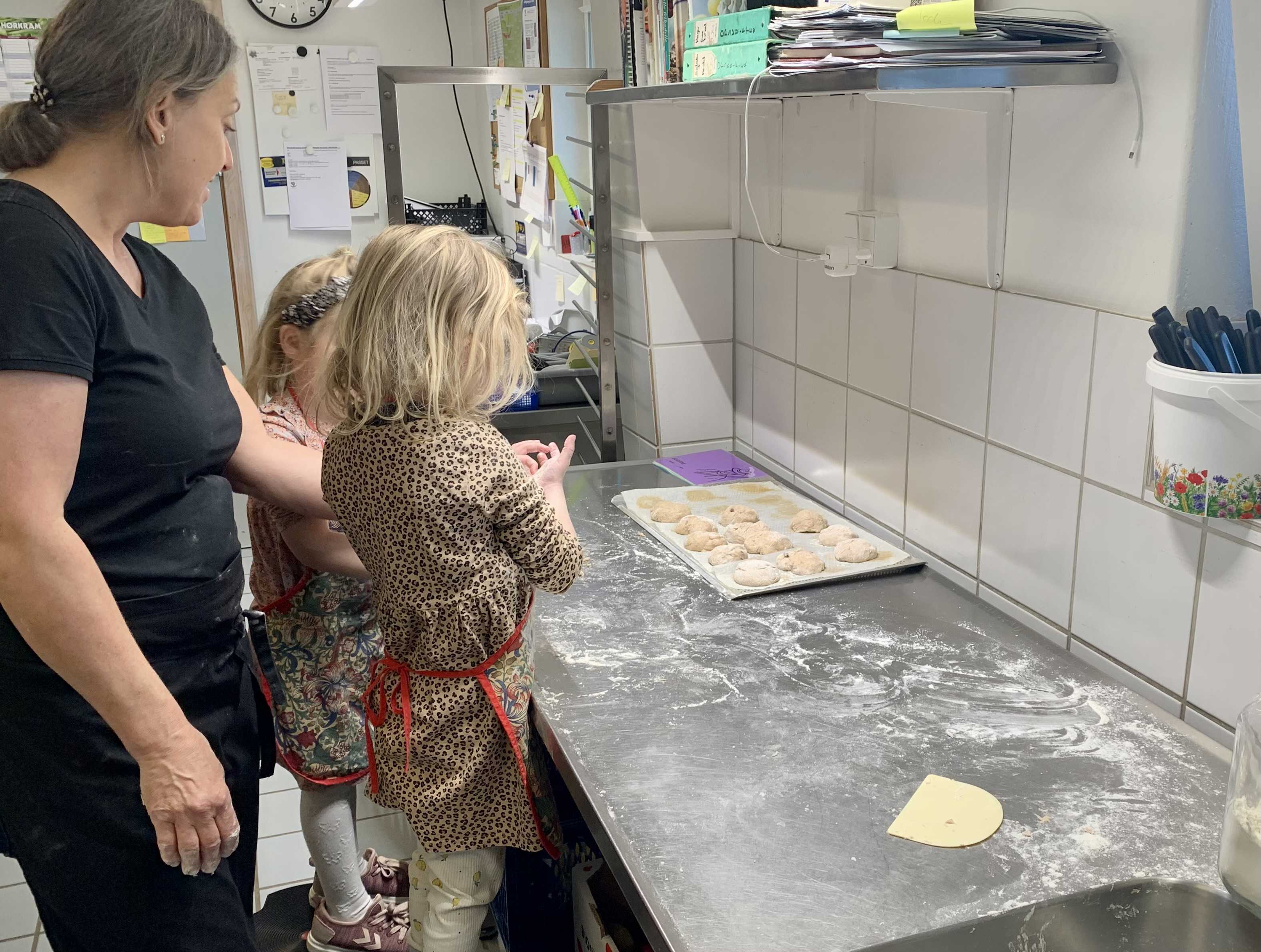 På Gadkjærgaard har vi ansat 3 uddannede kostfaglige medarbejdere samt 2 husassistenter, der hjælper med forefaldende arbejde i køkkenet. De kostfaglige medarbejdere står for planlægning og tilberedning af kosten. Alt mad laves fra bunden på Gadkjærgaard, så der er rig mulighed for børnene, i at følge madlavningen og dufte maden i huset. Det er en del af vores værdier på Gadkjærgaard, at vi har børnene med i madlavningen. Så oftest er der børn i køkkenet der hjælper med at ordne grøntsager, ælte bolledej, pakke varer ud og stille på plads. Gadkjærgaard-børn får kendskab til, hvorledes maden tilberedes og hvad de forskellige råvarer kan bruges til. Vi har frugtbuske og træer, urtehave, grøntsagshave, krydderurtebed og dyrehold. Børnene er med til at høste, koge og sylte. De samler dagligt æg hos hønsene og de ved at vore egne råvarer bruges i fremstilling af deres mad.