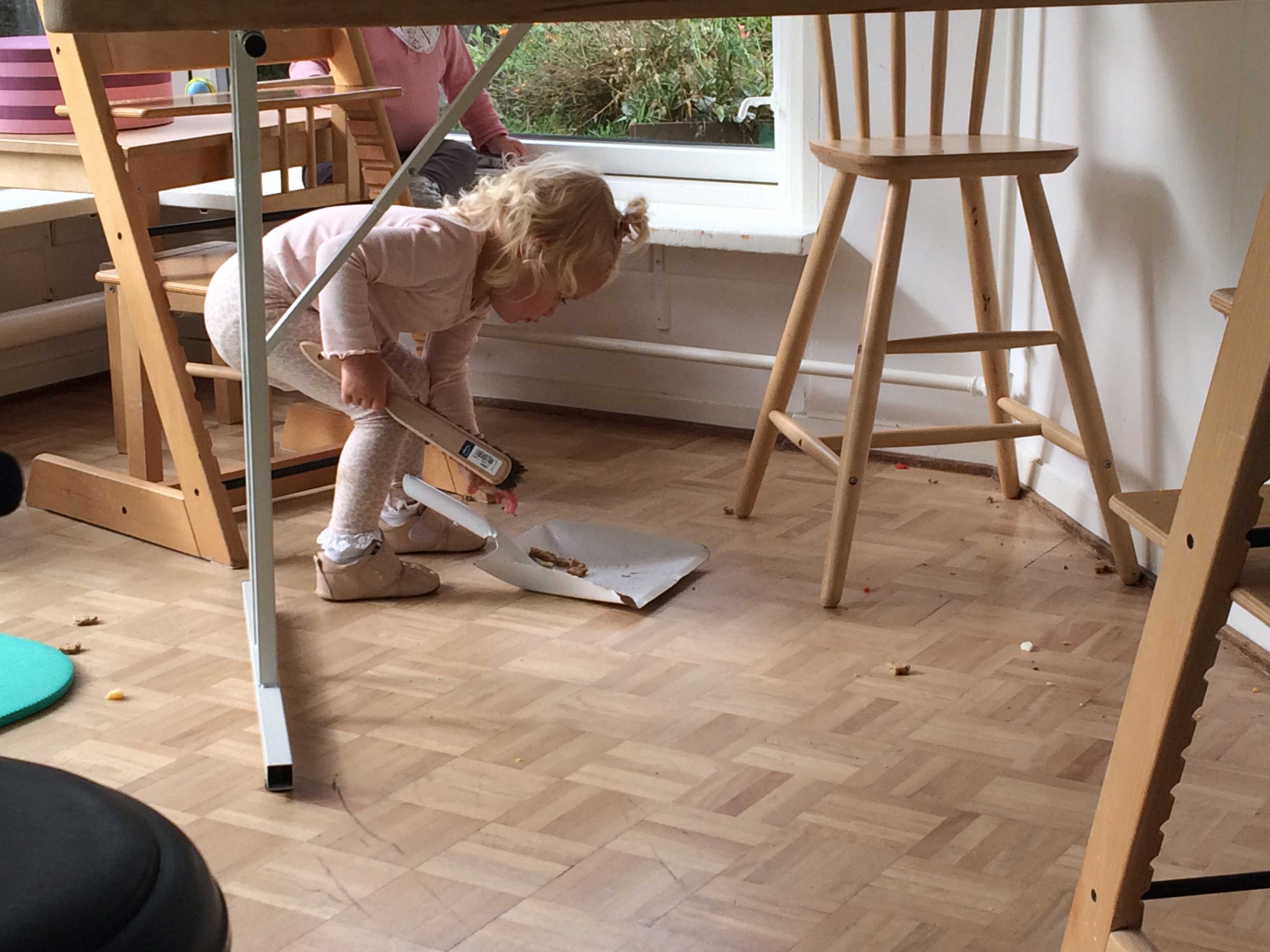 • Gulv fejes for madrester efter måltidet.