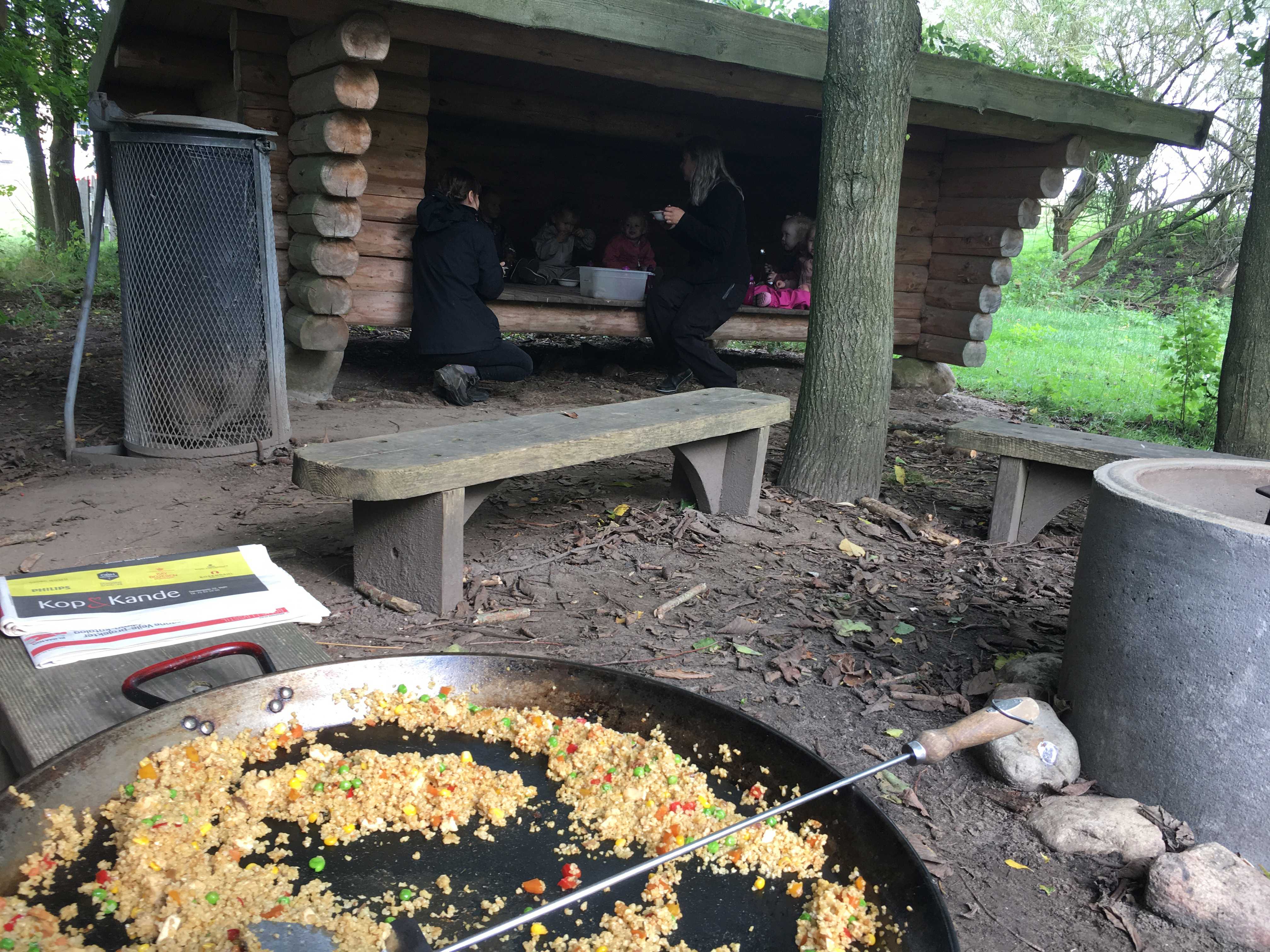 Der må ikke leges i bålhytten. Området er til bål og bålmad sammen med en voksen. Legetøj skal ikke medbringes i bålhytten.