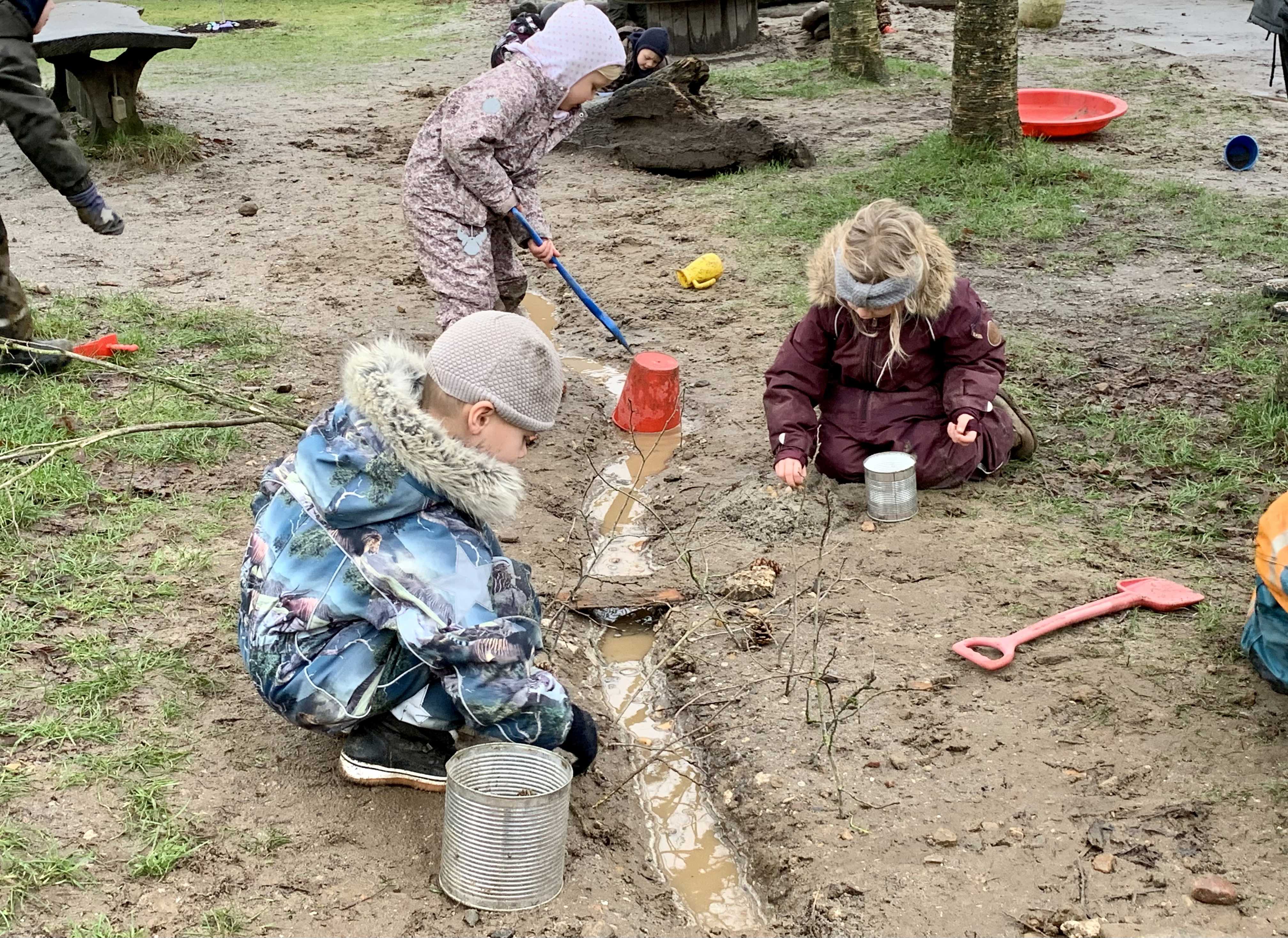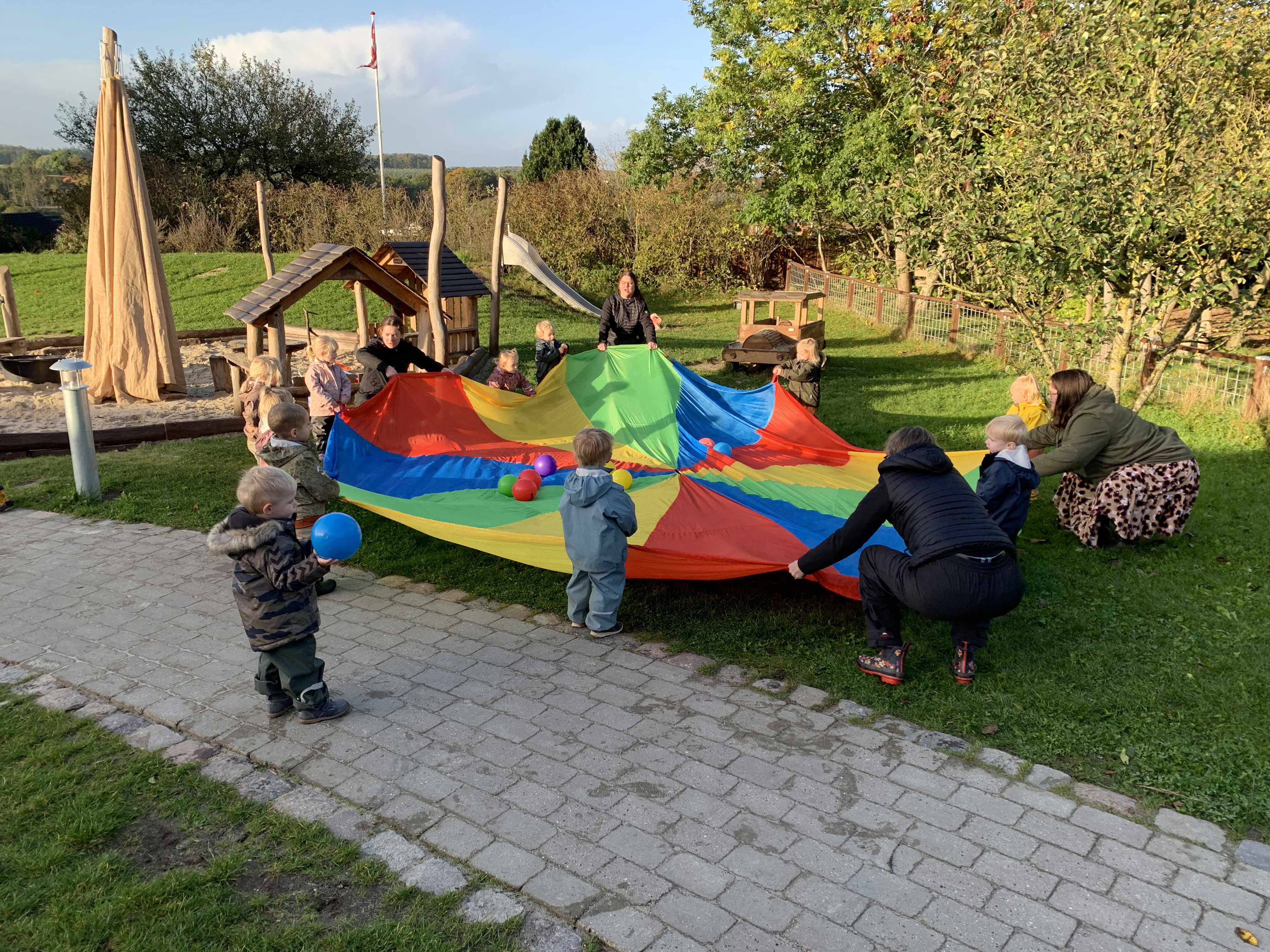 Der foregår planlagte aktiviteter ude – på legepladsen, hos dyrene, i nærområdet og på gåture. Vi bruger også indearealerne i vuggestuens og børnehavens forskellige læringsrum til kreativitet, motorik, musik og leg, hvilket betyder at børnene ikke nødvendigvis kommer ud hver dag. Oftest er børnene opdelt på tværs af de to vuggestuegrupper i små grupper med færre børn, da vi oplever, at det enkelte barn får mere plads og bliver mere synligt i flokken for de andre børn. Vi har erfaret, at der er færre konflikter og det enkelte barn får mod på andre udfordringer og tager flere initiativer. Børnene bliver gennem planlagte pædagogiske aktiviteter og i leg udfordret til læring på det niveau, de nu er.