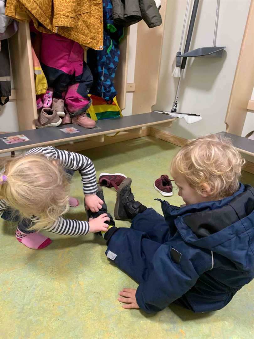 Vi vil gerne, at I medbringer 2 sæt skiftetøj til barnet, som bukser, bluse, undertøj og strømper. På badeværelset har barnet en kasse med navn på, med plads til skiftetøj og tøj til at sove i. I garderoben vil vi gerne have at jeres barn har fodtøj og overtøj til årstidens vejr, her er også plads til barnets sovedyr og 2 sutter (Hvis barnet bruger sut). Ekstra sutter lægges i bægeret, og det er jeres ansvar at tage sutterne med hjem til skoldning. Det letter vores arbejde meget, hvis I jævnligt tjekker at jeres barn har det tøj som det skal bruge. Husk navn i tøj, overtøj og fodtøj samt sutter og sovedyr – det er en stor hjælp for os. Hvis barnet har vasketøj med hjem, lægger vi det i barnets garderobe i en pose. Om fredagen tømmer I barnets garderobe, så der kan blive gjort rent.